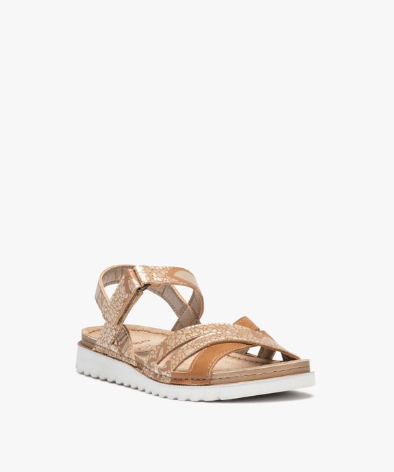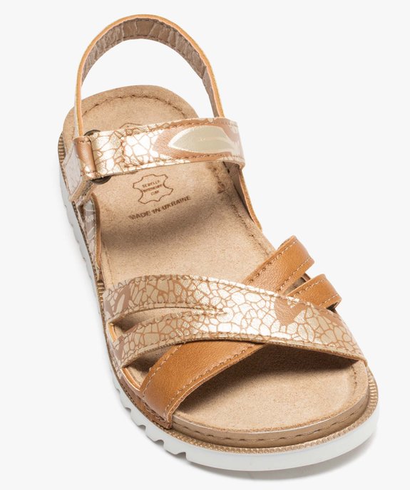 Sandales fille avec brides à imprimé irisé imitation crocodile marron clair