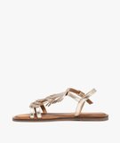 Sandales fille dessus cuir à franges métallisées – Tanéo gold