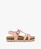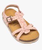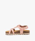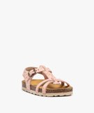 Sandales fille dessus en cuir velours à motifs fleuris et bride à boucle - NA! rose