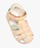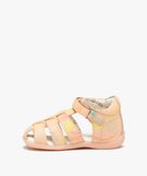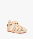 Sandales fille en cuir imprimé avec bout fermé et à scratch - Kickers rose