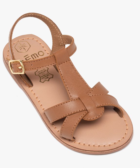 Sandales fille en cuir uni à multiples brides marron clair