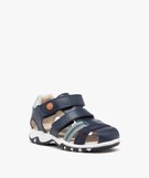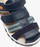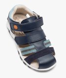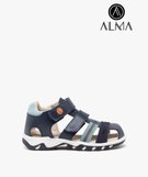 Sandales garçon en cuir avec brides à scratch et bout fermé - Alma Planète bleu fonce