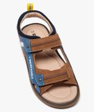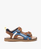 Avec des détails sportswear et à la fois casual, ces sandales pour garçon vont ravir votre enfant. Avec deux scratch pour les ajuster facilement, il peut les chausser en toute autonomie. On adore les surpiqûres contrastantes sur les brides et le côté coloré où est inscrit 'l'increvable". Ces chaussures ouvertes sont robustes et confortables, avec un col et une semelle intérieure moussés. L'été s'annonce léger pour les jeunes aventuriers ! À porter avec bermudas et tenues confortables de saison.
