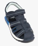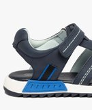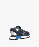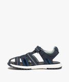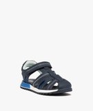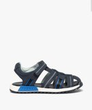 Ces sandales pour garçon présentent un habile mélange de classique et de modernité. Ce sont des nu-pieds qui affichent une coupe à brides multiples, rassemblées par une bride centrale. Un modèle toujours aussi confortable, qui passe les générations sans prendre une ride. Ici le bout est fermé et le col rembourré pour bien protéger le pied. On remarque la semelle contrastante, avec couche d’usure colorée et finement crantée : c’est la touche tendance qui fait de ces sandales unies l’accessoire incontournable des garçons ces été. Fermeture bride scratch sur le dessus. Surpiqûres contrastantes.
