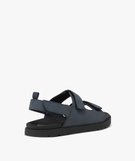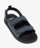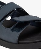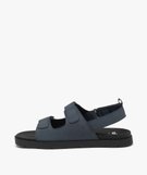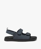 Sandales garçon unies à trois scratch et semelle ton sur ton bleu fonce
