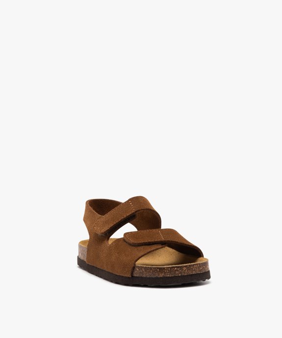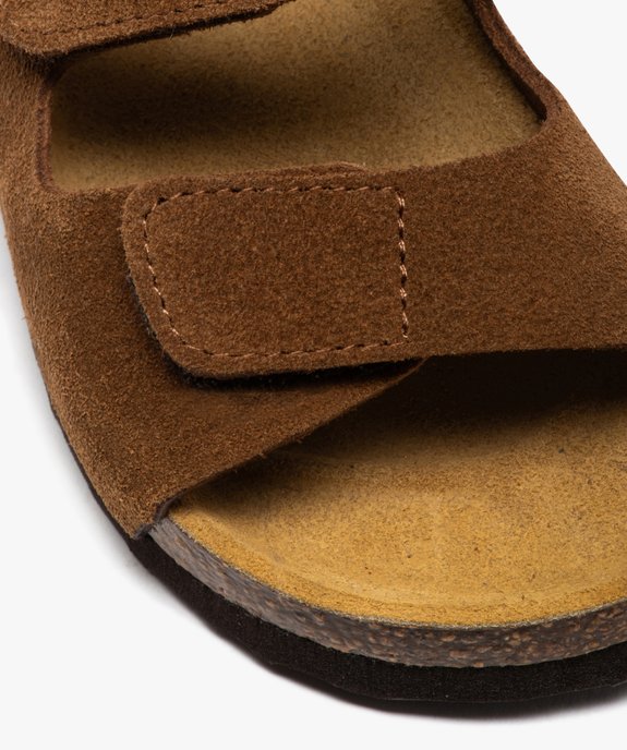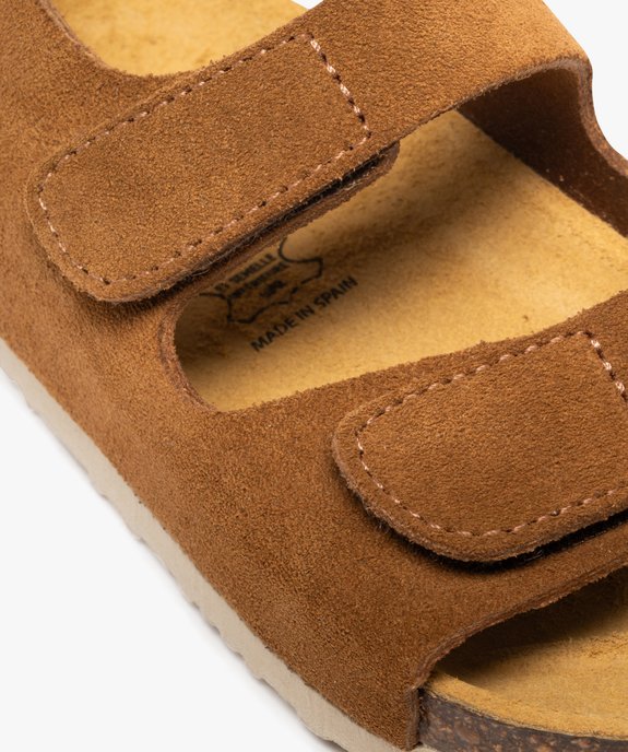 Sandales garçon unies en cuir suédé avec deux brides scratch marron chine