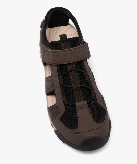 Sandales homme sport forme basket ajourée en mesh et à scratch marron chine