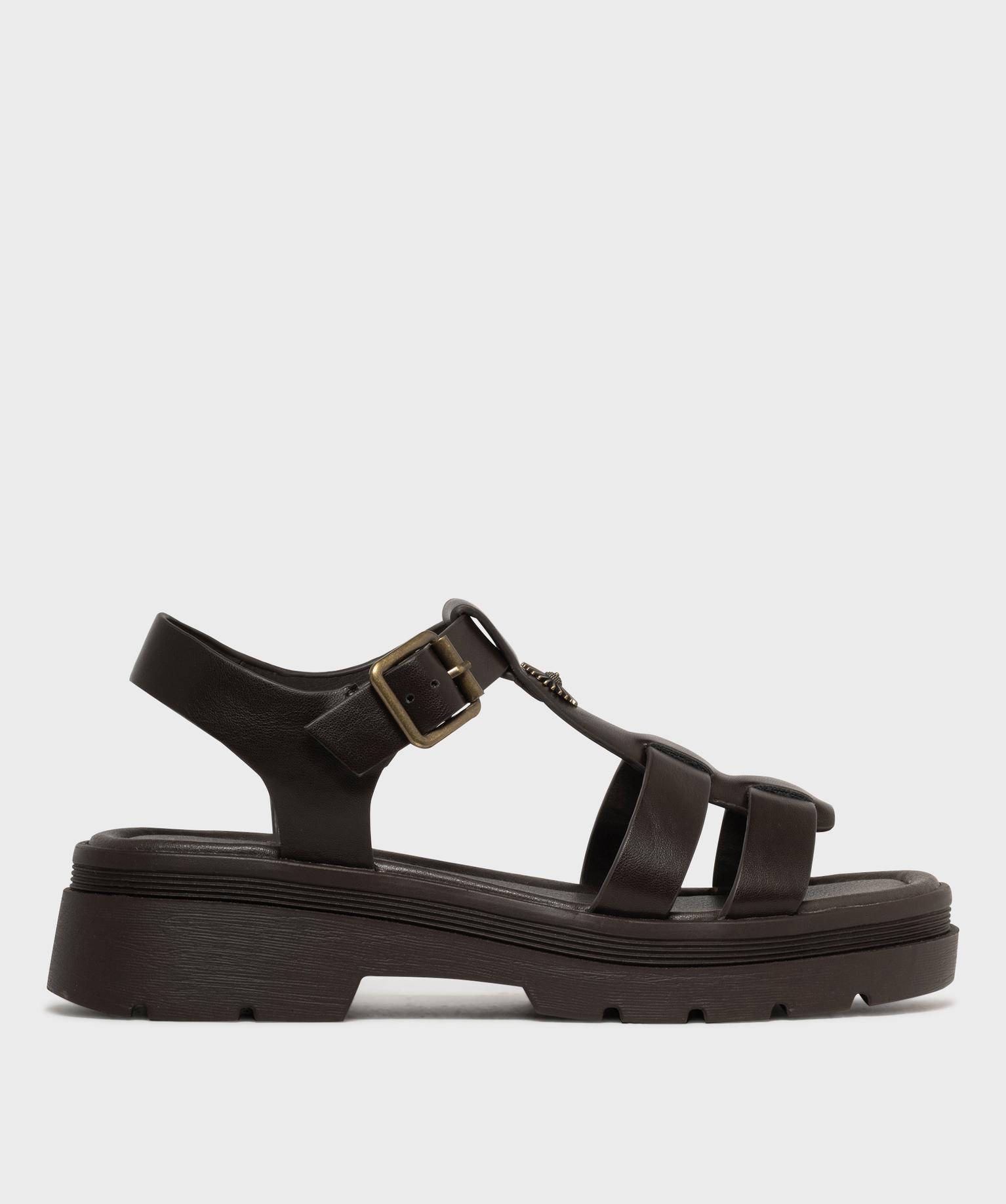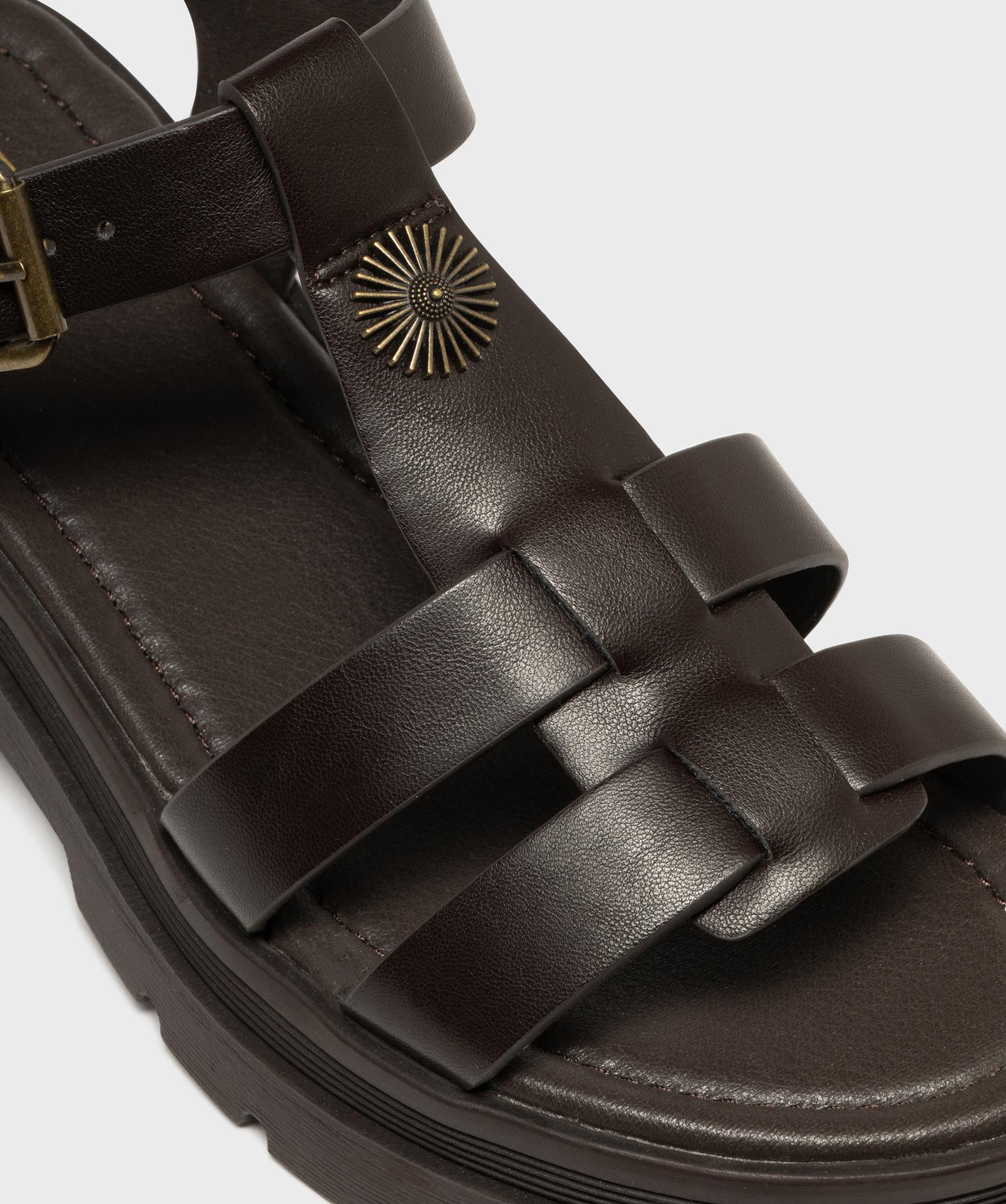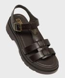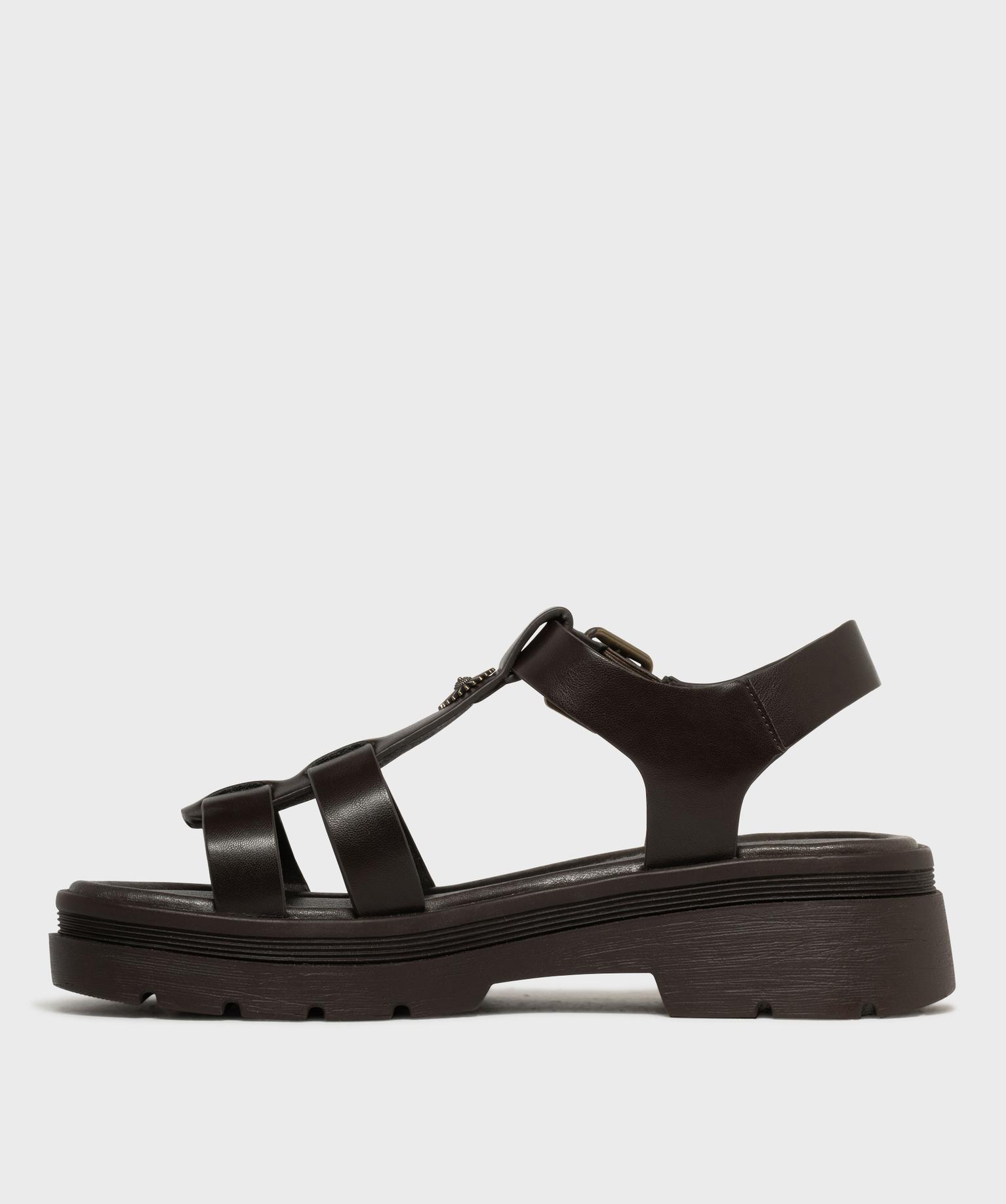 Sandales look spartiates à épaisse semelle crantée femme marron fonce