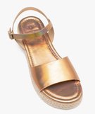 Ces remarquables sandales pour femme multiplient les détails tendances : épaisse semelle crantée en corde tressée de fils brillants, finition minimaliste sans coutures, bel effet métallisé. Des nu-pieds au top pour apporter de la féminité et de l'originalité à vos tenues, tout en vous assurant un bon confort de marche. Fermeture par boucle carrée à la cheville.
