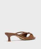 Sandales mules à petit talon femme - Follow Me cognac