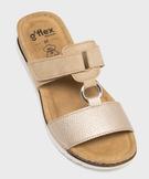 Ces sandales mules accompagneront les tenues estivales avec élégance tout en prenant soin des pieds sensibles. Conçues en cuir imitation, elles se composent d’une large bride métallisée aspect grainé et d’une bride plus fine fermée par un scratch. Les deux brides sont réunies par un anneau métallique, ajoutant une subtile touche de style. Ces sandales confort pour femme sont dotées d’une semelle légèrement compensée aspect corde tressée, avec première en cuir respirante et couche d’usure antidérapante au coloris contrastant. Des mules d'été faciles à enfiler et faciles à porter avec l’intégralité du vestiaire.