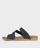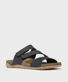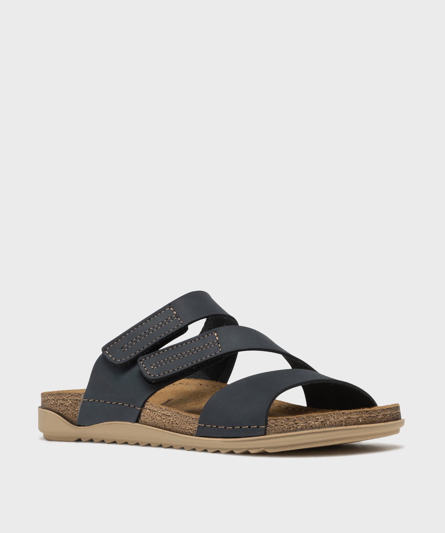 Sandales mules confort dessus cuir nubuck femme bleu fonce