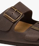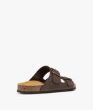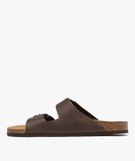 Sandales mules confort en cuir 2 brides homme marron fonce