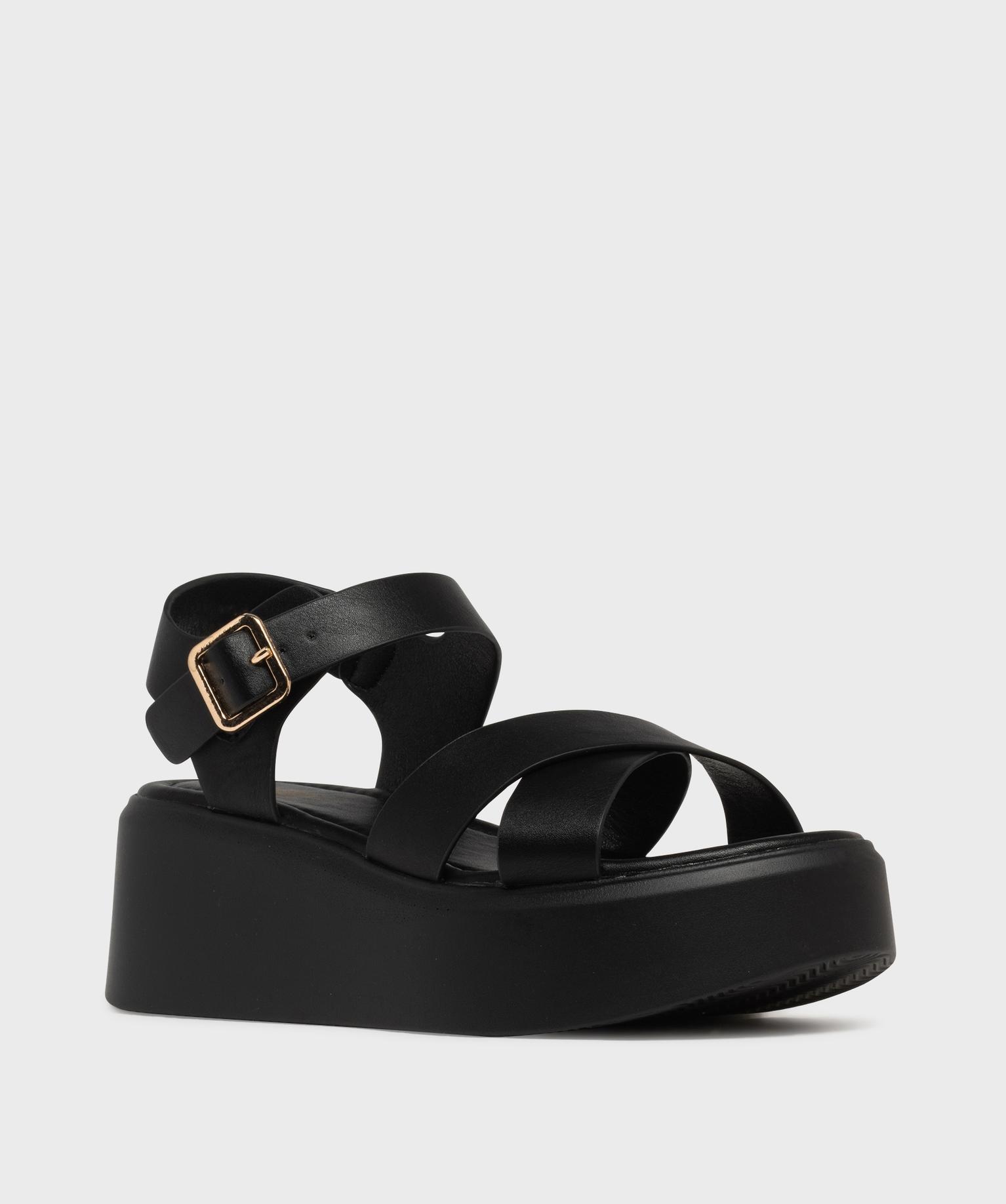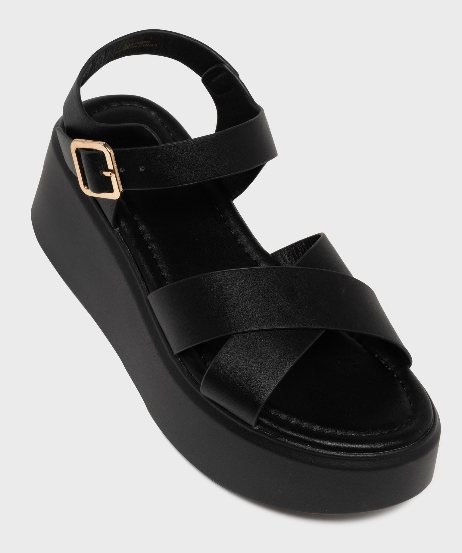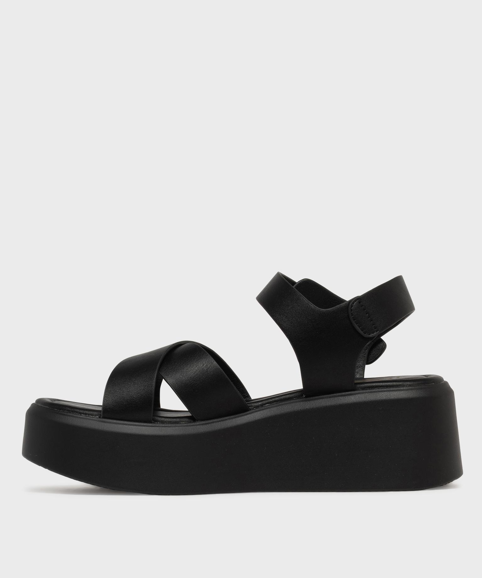Sandales plateformes à brides croisées femme noir