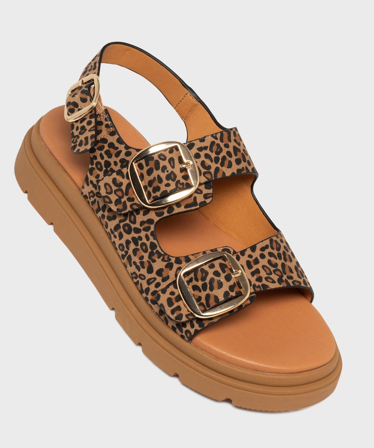 Osez affirmer votre style avec ces sandales femme à semelle plateforme à l'imprimé léopard tendance. Leur design mêle esprit casual et féminité. Les sandales présentent 3 points d’ajustement par boucles dorées, parfaits pour un maintien sur mesure. La semelle plateforme apporte du confort tout en élevant la silhouette. Des nu-pieds au look moderne et audacieux, à porter avec un combishort fluide ou une jupe en jean.