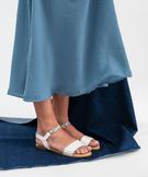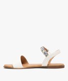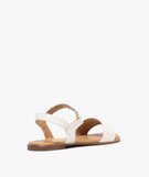 Pour passer l'été à l'aise et avec élégance, adoptez ces ravissantes sandales pour femme. Les sandales plates se distinguent par leur bride en foulard tressée autour de la cheville et leur liseré doré tout autour de la semelle. Pour le reste, ces nu-pieds brillent par leur sobriété : large bride sur l'avant, fine semelle, petit talon plat, bride à scratch pour un ajustement optimal. Des sandales idéales avec un pantalon de tailleur, un pantalon ample, une robe d'été ou un short en jean !