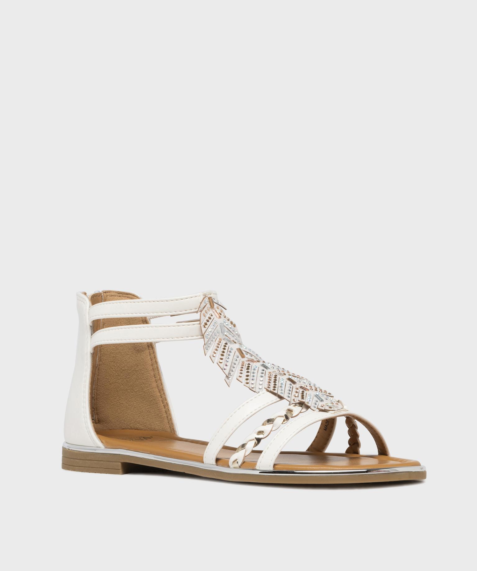 Sandales plates à brides avec fermeture zip au talon femme - Emilia Rosa blanc
