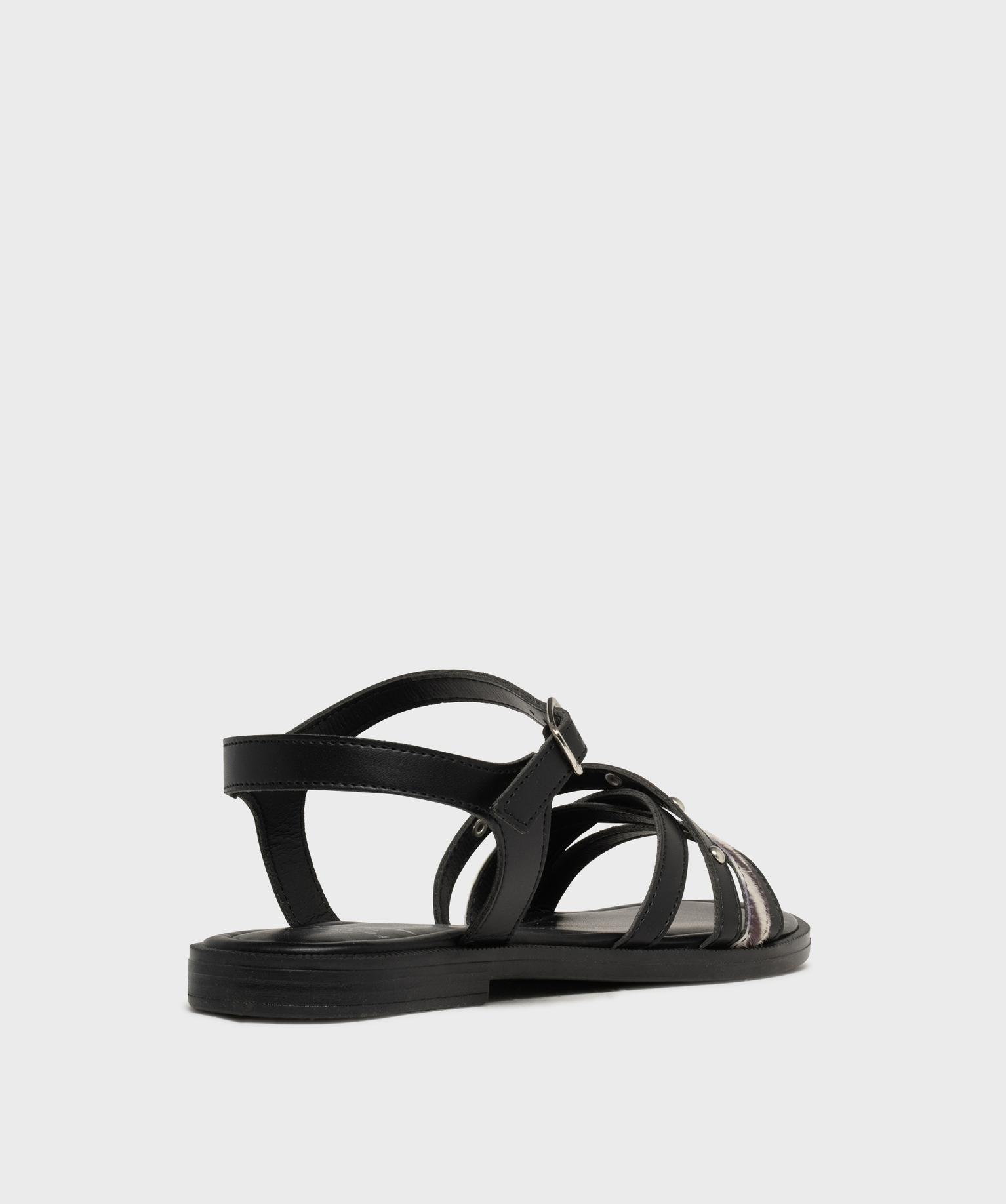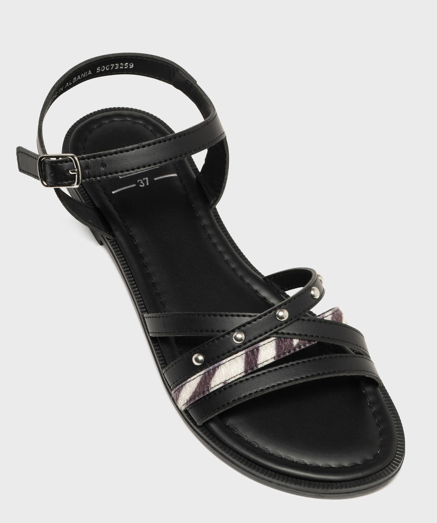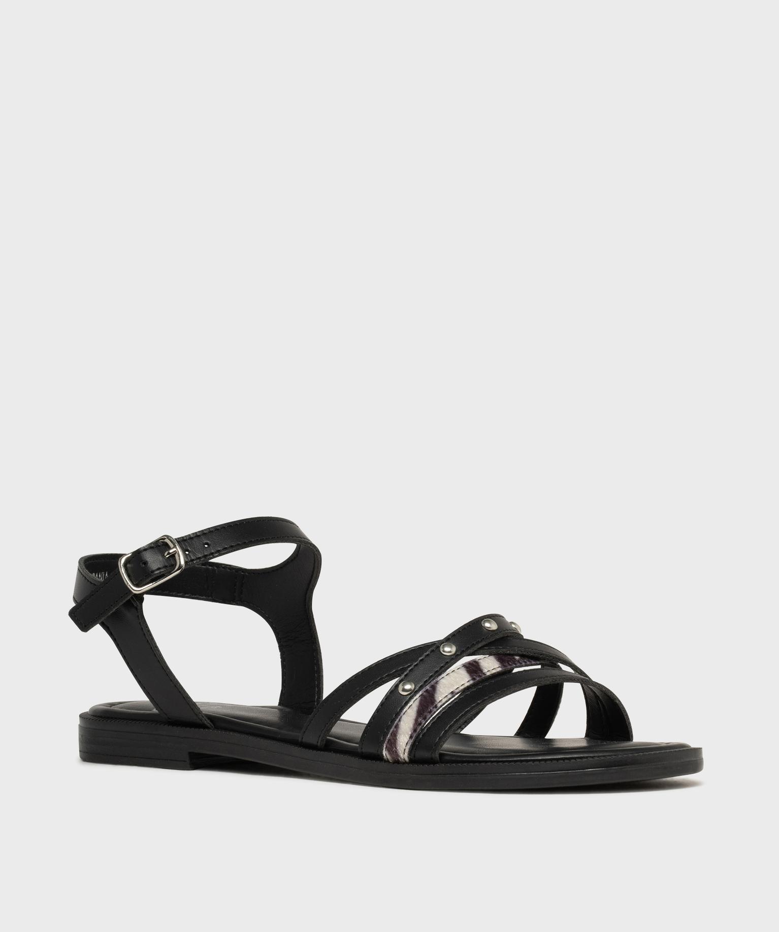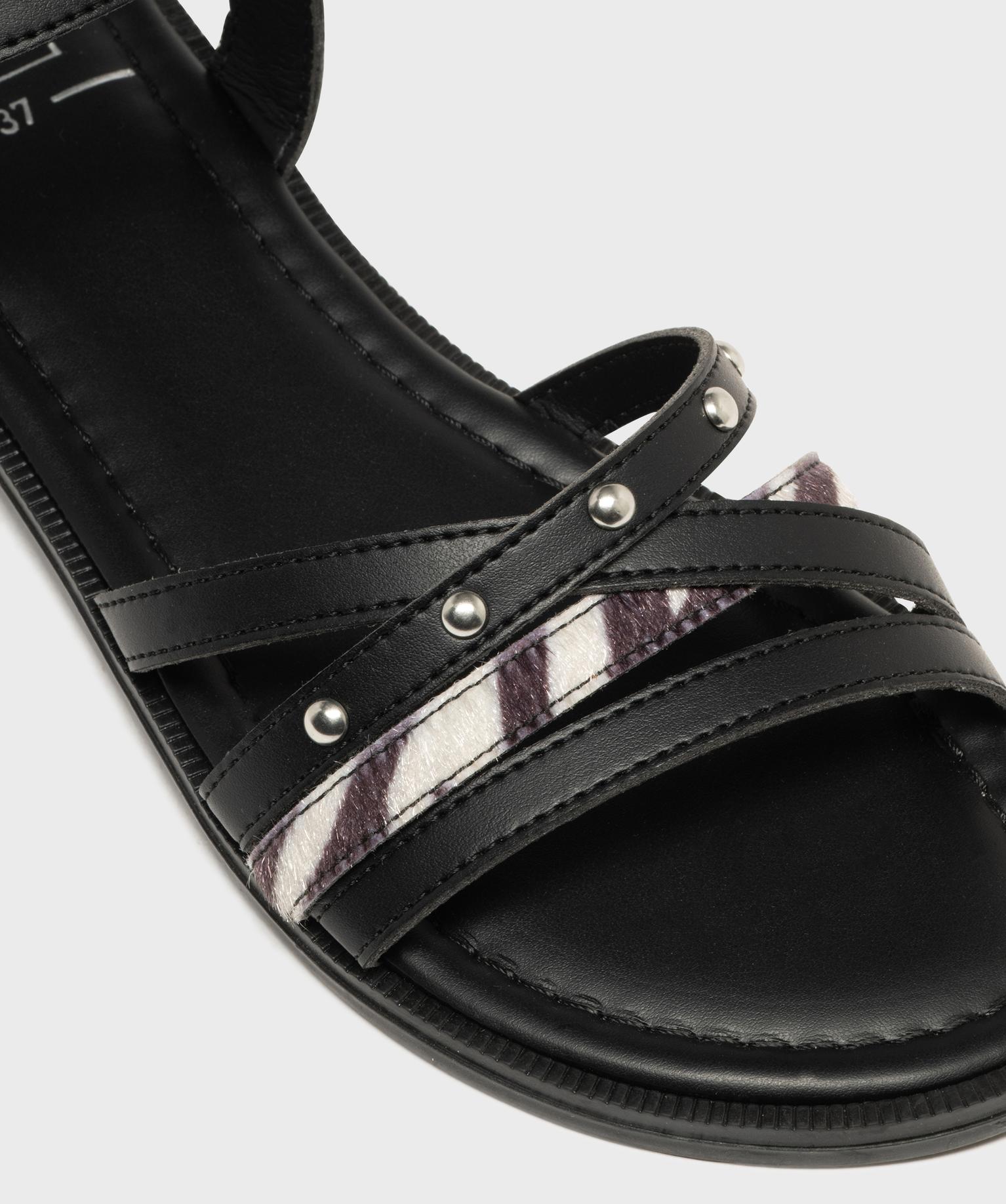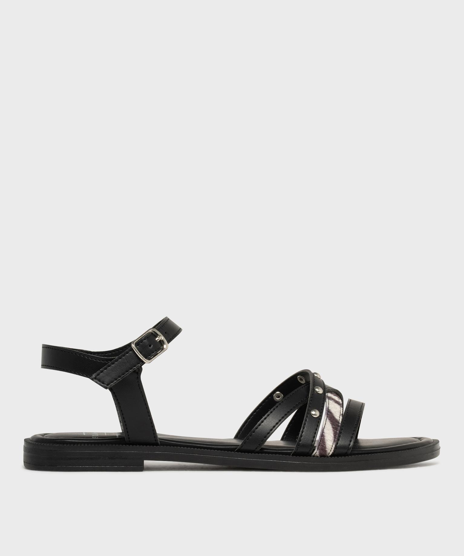 Laissez-vous séduire par ces sandales plates pour femme : elles mixent avec brio les matières et les détails tendance. Sur le dessus, un joli jeu d'entrelacs combine brides mates, touches cloutées et une bride pelage zèbre imitation ultra stylée. À la cheville, la bride unie mate réglable par boucle assure maintien et élégance. Leur petit talon plat et leur semelle intérieure moelleuse offrent un confort idéal pour accompagner toutes vos journées : en ville avec un chino retroussé, en vacances avec un combishort en jean ou lors de vos soirées d'été avec vos robes légères et vaporeuses !