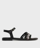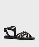 Sandales plates à brides entrelacées femme noir