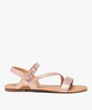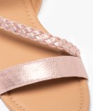 Pour passer l'été à votre aise mais avec juste ce qu'il faut de sexy, adoptez ces jolies sandales pour femme. La bride tressée sur le coup de pied et le coloris métallisé subliment vos pieds avec charme. La bride à boucle à la cheville permet d'ajuster le maintien. Vous porterez ces nu-pieds avec une robe longue vaporeuse pour adopter un look bohème.