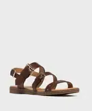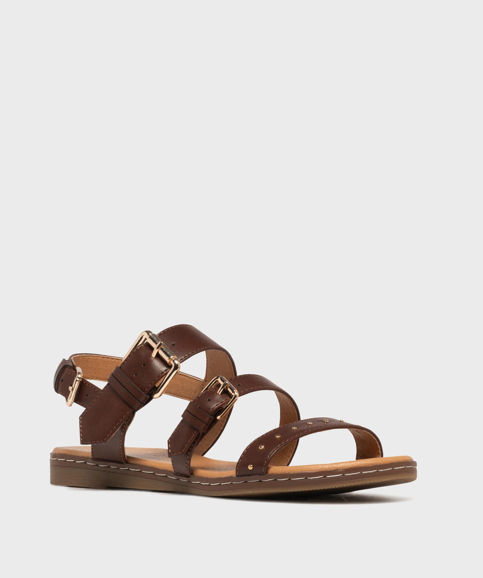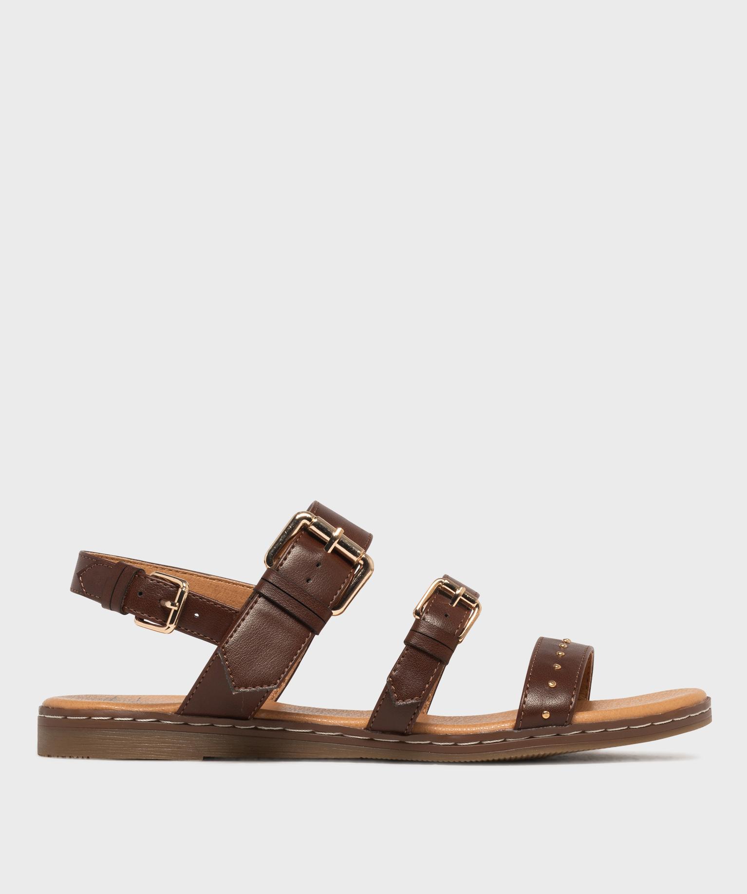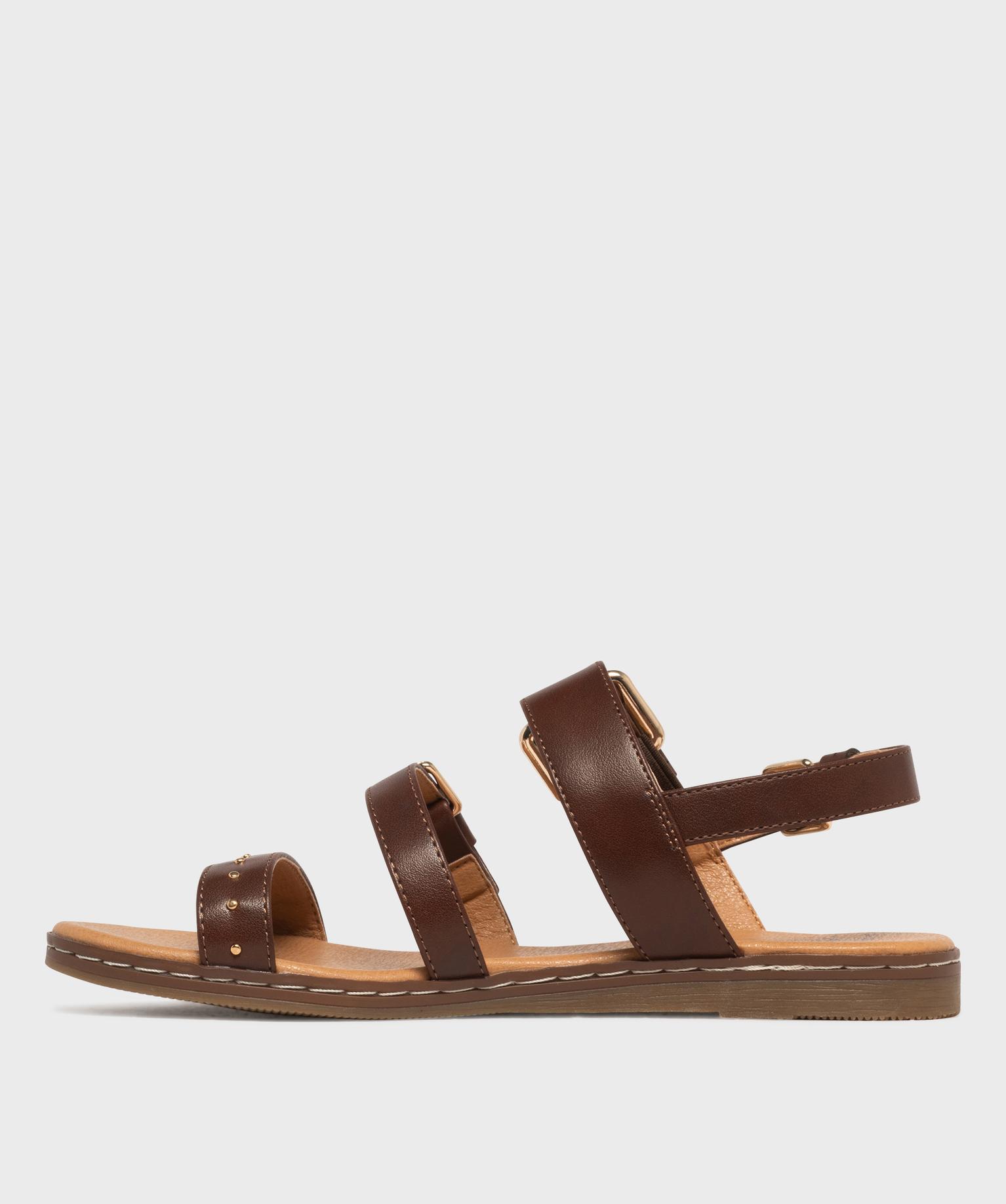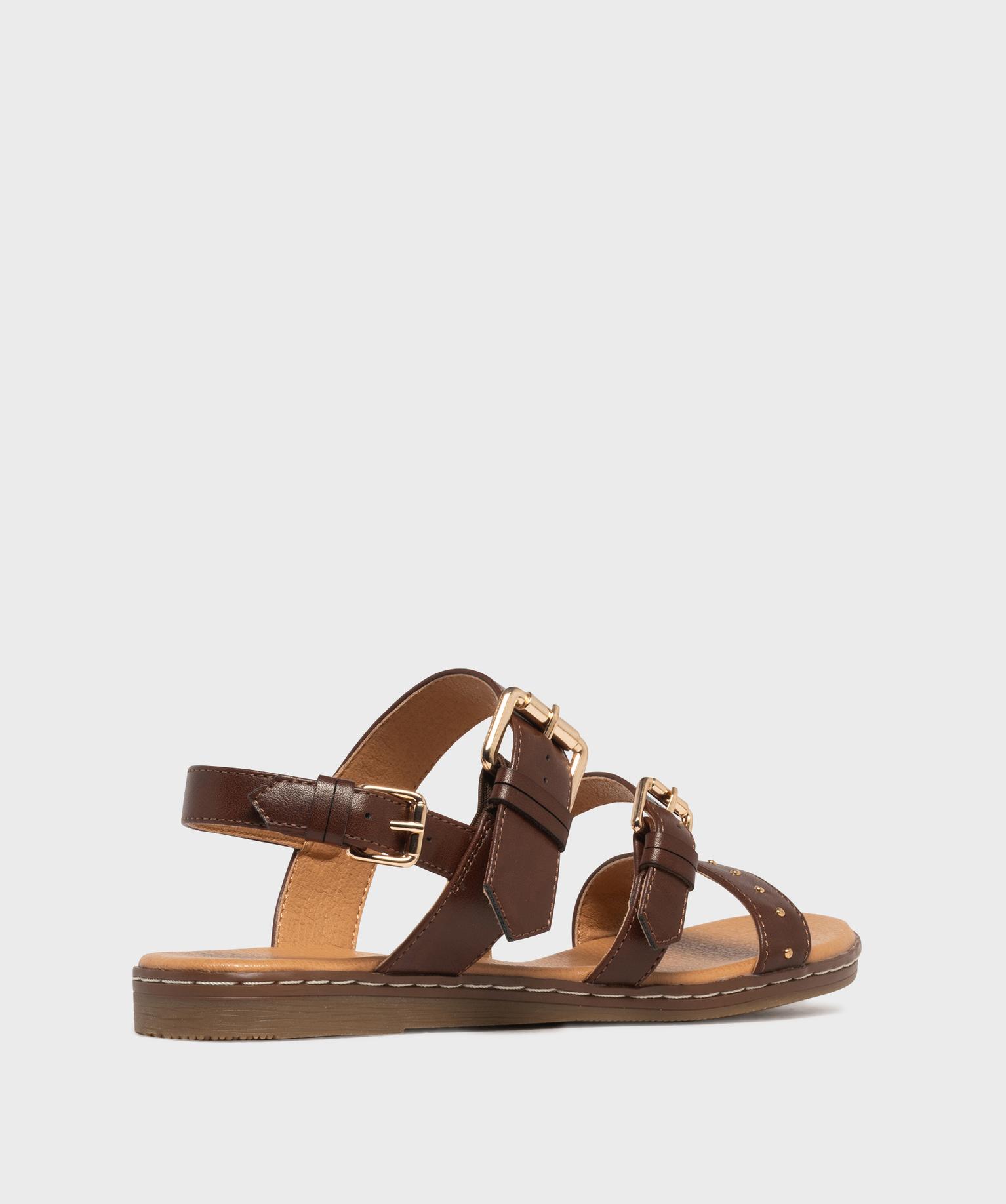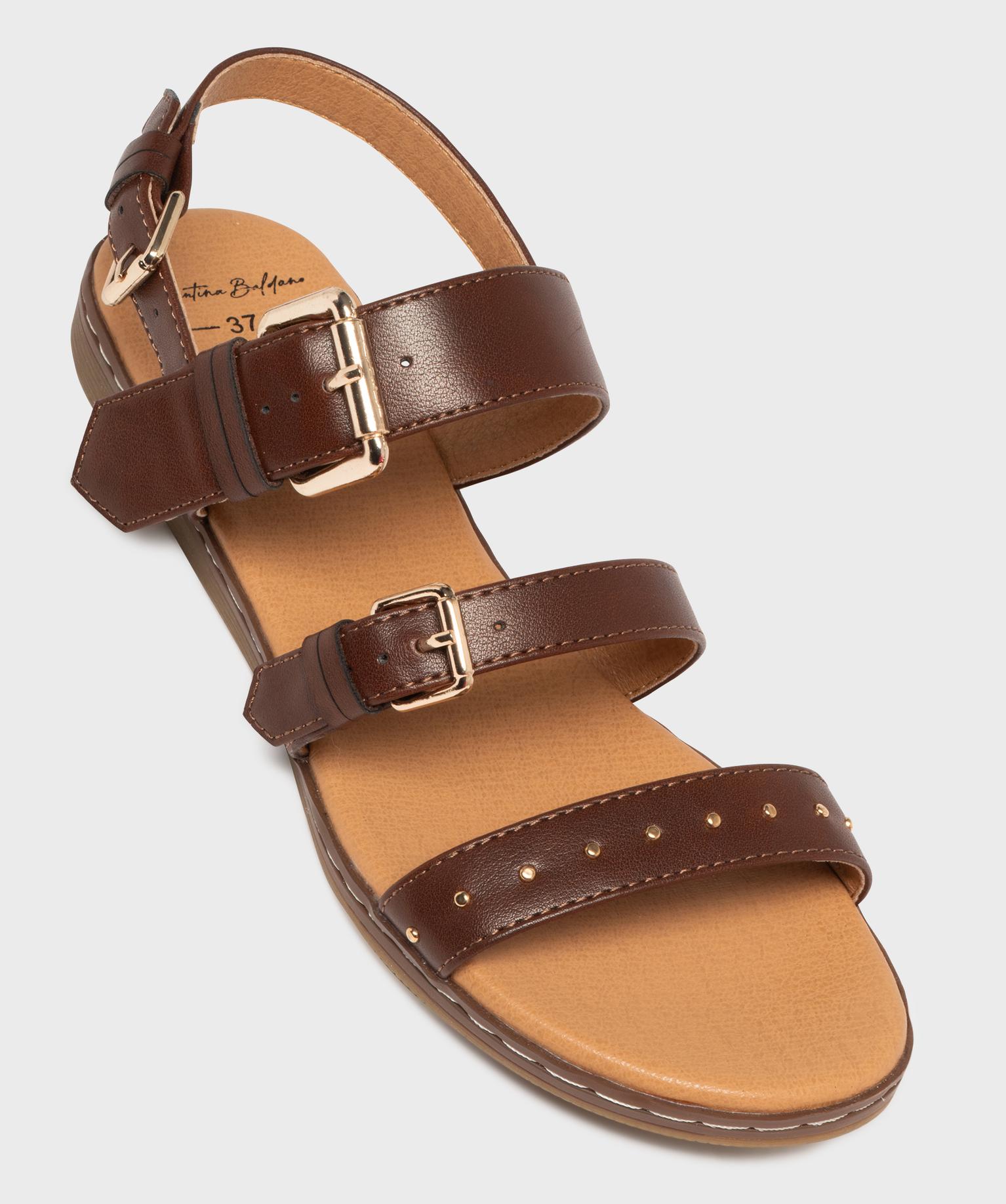 Sandales plates avec brides à boucles et à clous femme - Valentina Baldano marron fonce