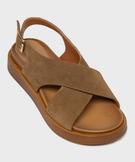 Sandales plates avec brides en cuir croisées femme - Tanéo marron
