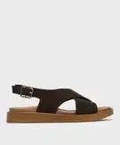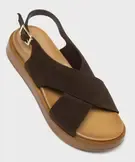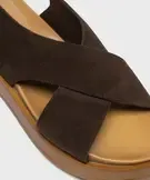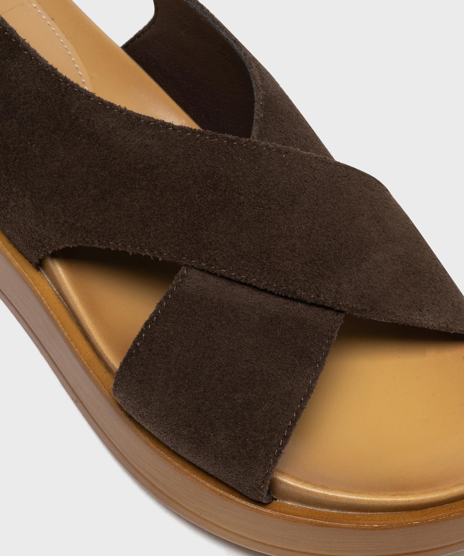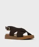 Sandales plates avec brides en cuir croisées femme - Tanéo marron fonce