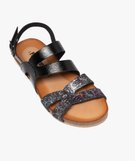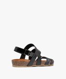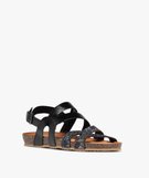 Sandales plates avec brides en cuir scintillantes et vernies femme noir