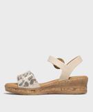 Vous allez tomber sous le charme des sandales compensées Emilia Rosa, féminines et lumineuses pensées pour sublimer le vestiaire estival. À l’avant, une large bride scintillante habillée de motifs léopard apporte une touche audacieuse et sophistiquée. Grâce à son scratch réglable, elle assure un maintien sur-mesure et un confort optimal tout au long de la journée. La bride cheville, ornée d’une boucle en raphia, dissimule un scratch discret et facile à fermer. Ces sandales femme reposent sur une semelle compensée aspect liège, rehaussée de fines incrustations pailletées qui captent la lumière à chaque pas. Un modèle idéal pour allier confort et élégance tout au long de la journée. Semelle 1,5 cm.