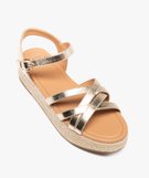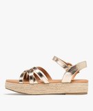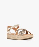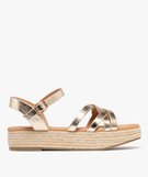 Sandales semelle plateforme en corde et brides croisées brillantes femme dore