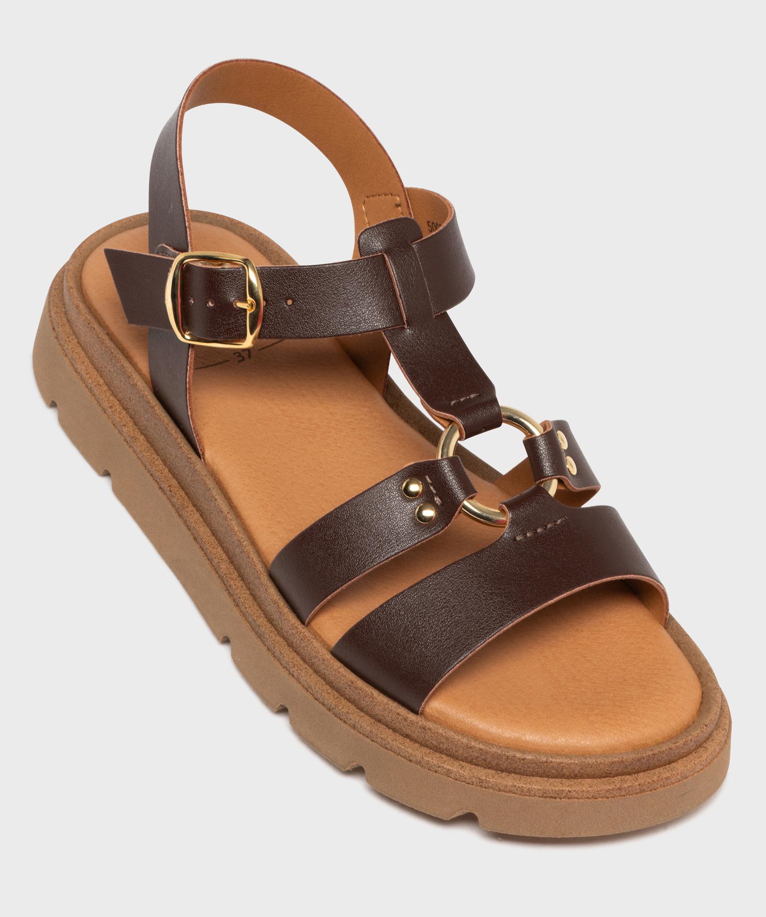 Sandales spartiates à épaisse semelle crantée femme - 5 Miles marron