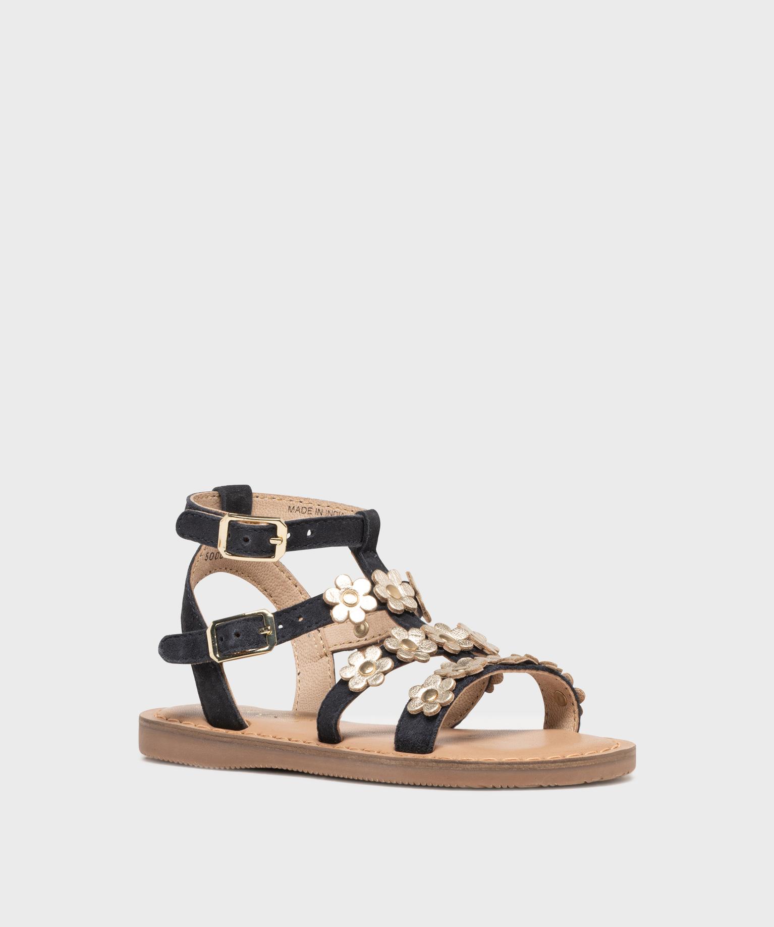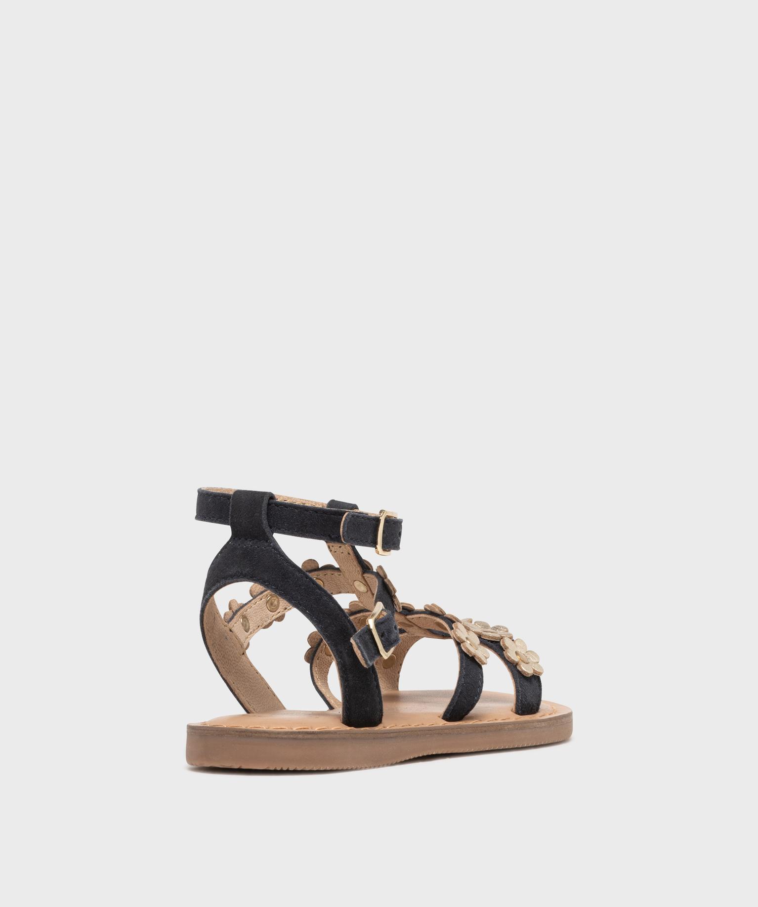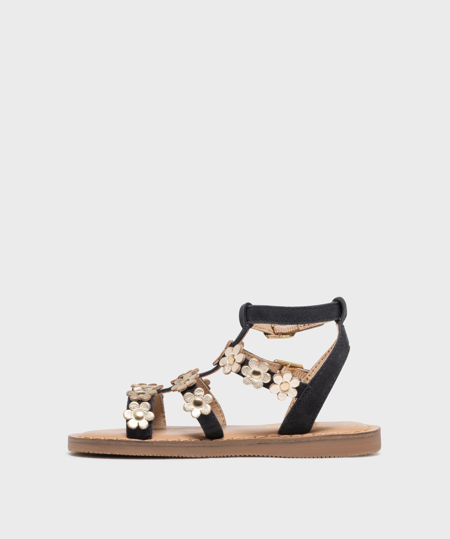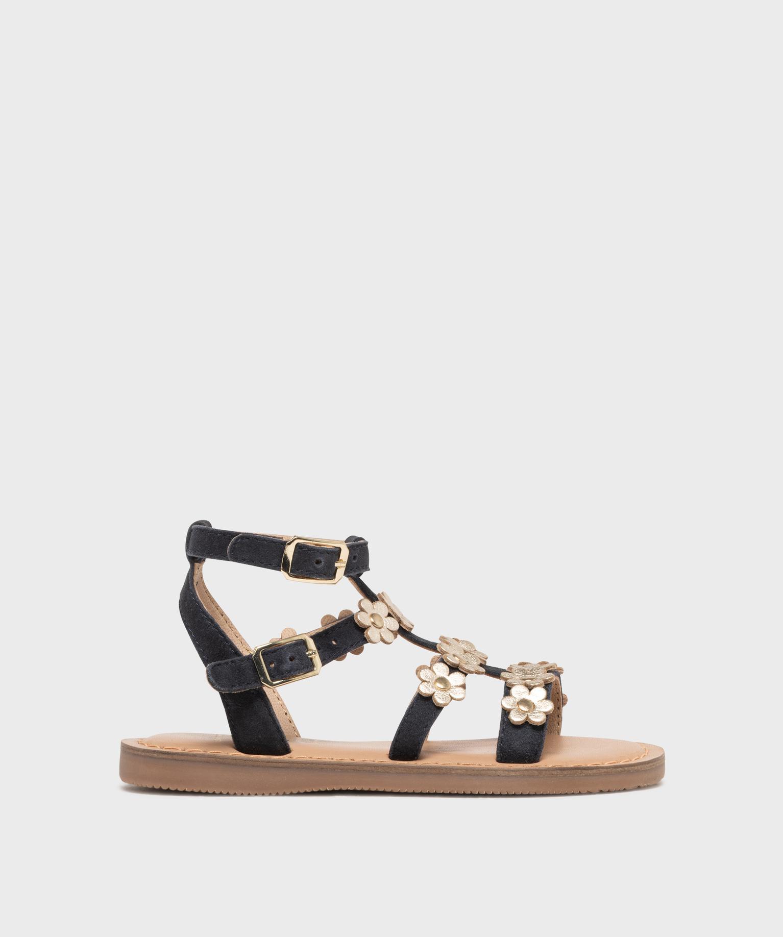 Sandales spartiates en cuir suédé et fleurs dorées fille - Lovely Wings marine