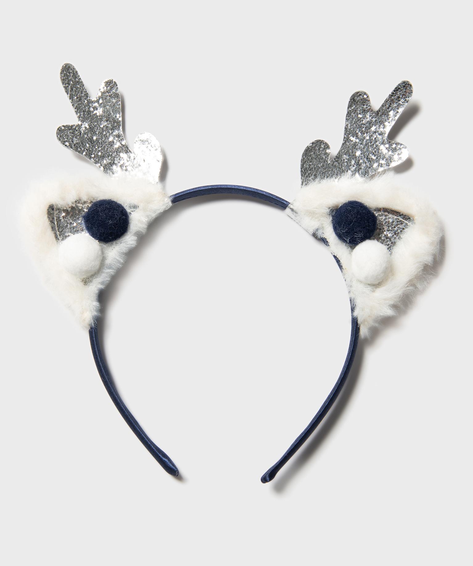 Serre-tête spécial Noël avec oreilles et cornes de renne fille bleu fonce