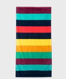 Indispensable de la saison estivale, la serviette de plage en éponge, allie douceur et style. Avec ses larges rayures multicolores, elle affiche un look dynamique et ensoleillé, parfait pour les journées au bord de l’eau. Confectionnée dans une matière moelleuse et absorbante, elle offre un confort optimal après chaque baignade. Cette serviette à rayures multicolore est dotée d’un large élastique permettant de l’enrouler et de la transporter facilement.