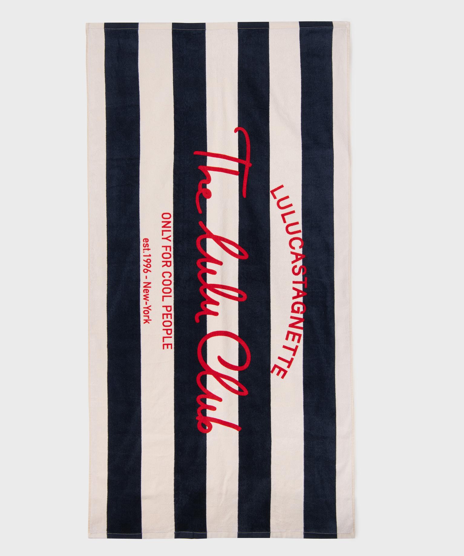 Serviette de plage en éponge à rayures avec inscription - LuluCastagnette bleu marine