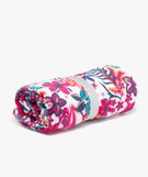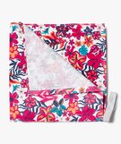 Serviette de plage fleuri avec son élastique de maintien pailleté enfant rose