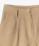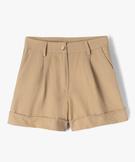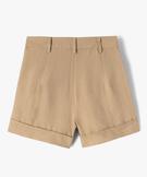 Un short femme ample et chic, idéal pour composer des looks city ou de cérémonie estivales. Combinez-le avec un chemisier, une blouse, un blazer ou un gilet sans manches pour l'élégance. Au quotidien, le tee-shirt blanc basique sera son meilleur allié. Le short est fabriqué dans un tissu fluide, texturé et subtilement froissé en viscose. Il possède 2 poches italiennes, de larges revers cousus dans le bas, des passants pour ceinture et une fermeture zip + bouton en écaille imitation. Pinces dans le dos pour un tomber impeccable.