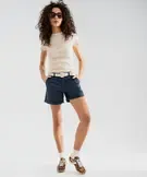 Short ample en coton stretch avec ceinture tressée femme bleu fonce
