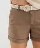 Short ample en coton stretch avec ceinture tressée femme marron fonce