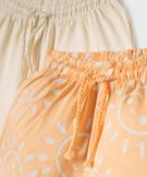 Lot de 2 shorts en coton pratiques, confortables et légers ! Des pièces essentielles du dressing estival. Le lot se compose de 2 shorts aux coloris assortis, 1 uni et 1 imprimé. Facile à enfiler grâce à leur ceinture élastique ajustable par cordon coulissant, les shorts affichent une coupe ample et une ceinture effet paper bag. Des shorts bébé fille à porter tout l’été avec un débardeur, un tee-shirt ou juste avec un body les journées les plus chaudes.