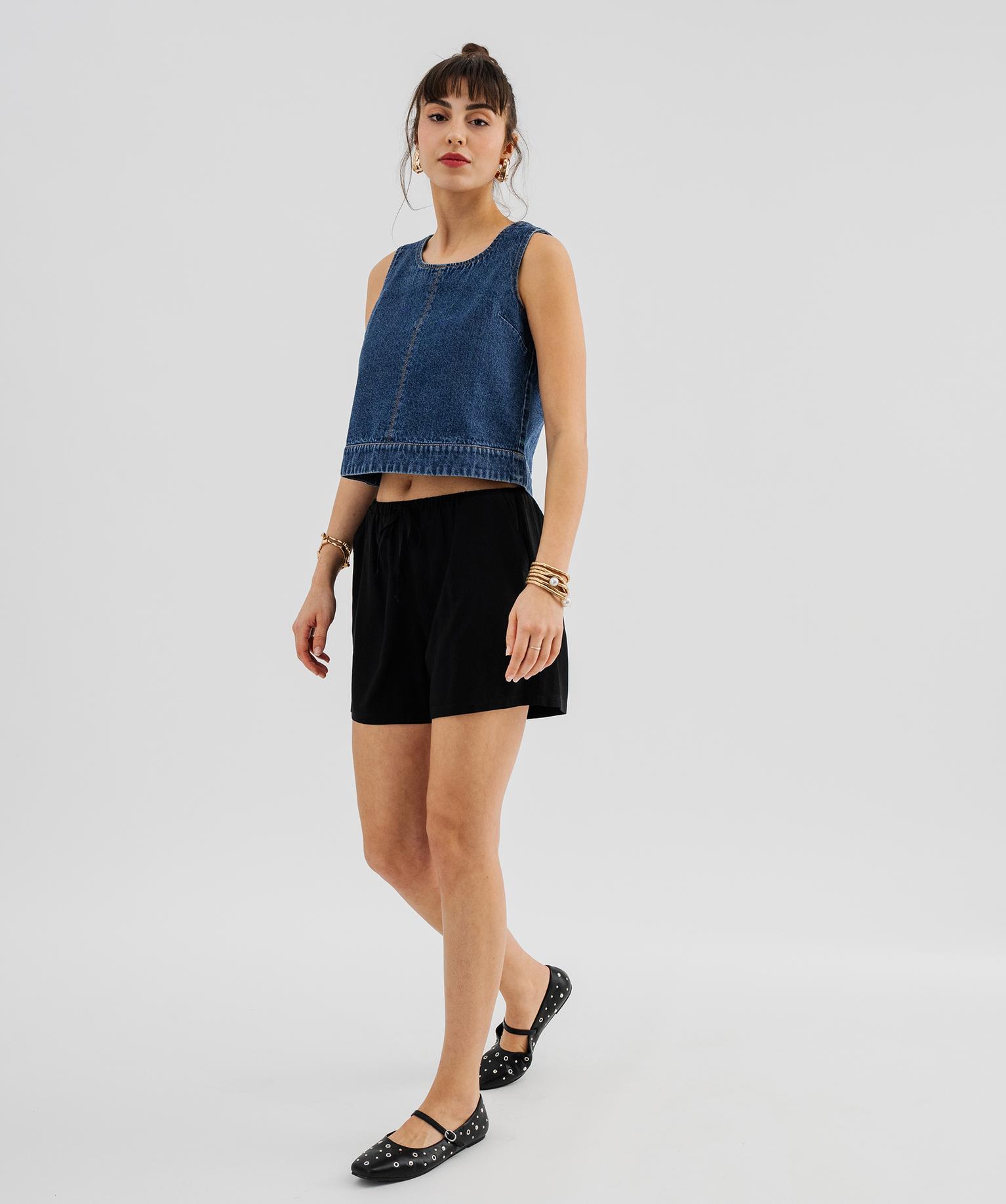 Indispensable du vestiaire estival féminin, le short ample fluide. Ce modèle se distingue par sa matière viscose très confortable qui apporte une touche de fraîcheur à tous les looks. Ce short femme est doté d’une taille élastique ajustable par une fine ceinture coulissante à nouer sur l’avant. Doté de deux poches italiennes, il est aussi pratique qu’élégant. Il se porte avec un tee-shirt et des sandales plates le jour, mais aussi avec une blouse sans manches et des sandales à talon le soir.