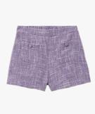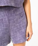Sublimez votre silhouette grâce à ce sublime short pour femme confectionné dans une matière tissée aspect tweed. Un short ample, aussi confortable qu’élégant à porter avec un collant ou jambes nues en fonction de la météo. Il est doté de deux poches plaquées ornées d’un petit bouton et d’une ceinture plate sur l’avant, élastiquée au dos. Un short chic à porter avec le haut sans manches assorti ou avec une chemise unie et une veste.