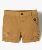 Le short des mini baroudeurs ! On adore sa coupe esprit aventurier dotée de fausses poches latérales à rabat pressionné et sa déclinaison dans de nombreux coloris. Ce short pour bébé garçon assure à votre bambin un confort en toutes circonstances grâce à son coton légèrement extensible et sa taille réglable. Ce short uni se porte retroussé avec un tee-shirt à motif ou avec un débardeur uni sous une chemise en jean. Fermeture 1 bouton-pression. Passants pour ceinture. 2 poches devant. Macaron dinosaure cousu sur la hanche.
