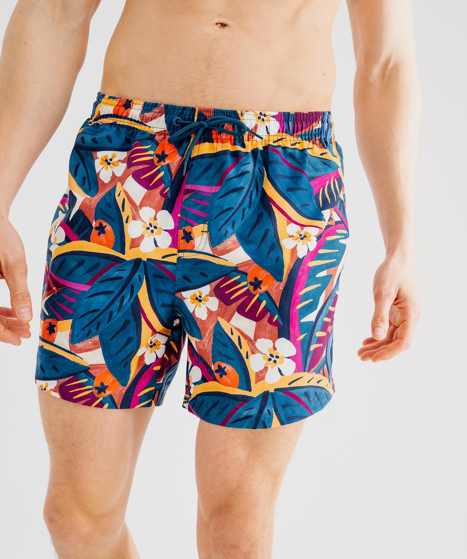 Short de bain à motifs exotiques avec taille élastique homme multicolore