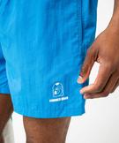 Cordon coulissant extérieur contrastant avec œillets argentés. Fausse braguette. 1 poche plaquée au dos avec œillet pour l'évacuation de l'eau. Doublure filet. Petit motif surf dans le bas de la jambe gauche.