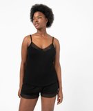 Short de pyjama en maille fluide avec bas en dentelle femme[MISSING] noir