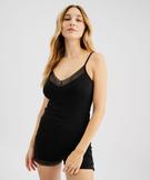 Short de pyjama en maille fluide avec bas en dentelle femme noir