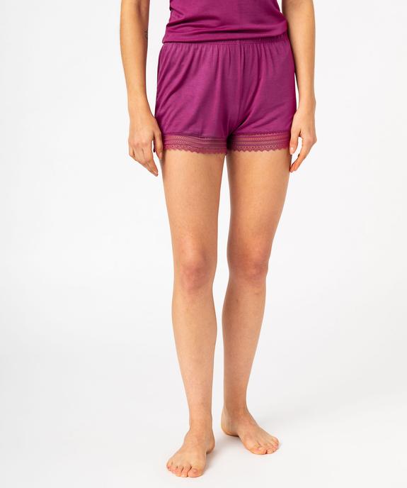 Short de pyjama en maille fluide avec bas en dentelle femme rouge vif