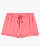 Offrez-vous une allure ultra féminine pour aller dormir ou pour vos soirées détente grâce à ce short de pyjama femme. Un short ample, confectionné dans une matière satinée pleine de reflets et agrémenté d’une bande de dentelle ton sur ton dans le bas. Ce bas de pyjama possède une ceinture élastique ajustable par un fin cordon coulissant. Un short satiné ultra chic à porter avec le débardeur assorti ou avec une veste de pyjama.