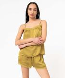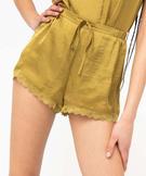 Offrez-vous une allure ultra féminine pour aller dormir ou pour vos soirées détente grâce à ce short de pyjama femme. Un short ample, confectionné dans une matière satinée pleine de reflets et agrémenté d’une bande de dentelle ton sur ton dans le bas. Ce bas de pyjama possède une ceinture élastique ajustable par un fin cordon coulissant. Un short satiné ultra chic à porter avec le débardeur assorti ou avec une veste de pyjama.